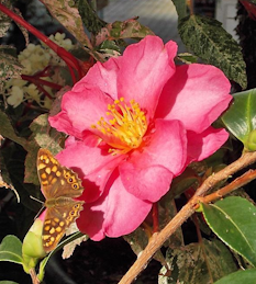 A l'automne, ce sont les camélias sasanqua qui ouvrent à saison. Plusieurs variétés vont fleurir jusqu'en février ou mars. Ils sont légèrement parfumé (fragrance d'humus).